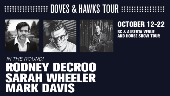 The Doves & Hawks Tour features singer-songwriters Rodney DeCroo, Sarah Wheeler (Vancouver), and Mark Davis (Edmonton) in the round through venues and house shows in BC and Alberta this October. TOUR DATES:…